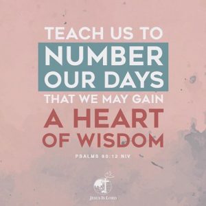 Teach us to number our days, that we may gain a heart of wisdom… Psalm 90:12 by coronabc | Feb 28, 2017 | Spiritual Quotes | 0 commentsPlease click the share button below. This devotion may help someone you know.Share this:Share Click to share on Facebook (Opens in new window) Facebook Click to share on X (Opens in new window) X RelatedSubmit a Comment Cancel replyYour email address will not be published. Required fields are marked *Comment *Name * Email * Website Notify me of follow-up comments by email. Notify me of new posts by email.